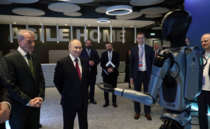 Перед началом пленарного заседания Владимир Путин лично осмотрел выставку, на которой ознакомился с достижениями российских компаний в сфере искусственного интеллекта.